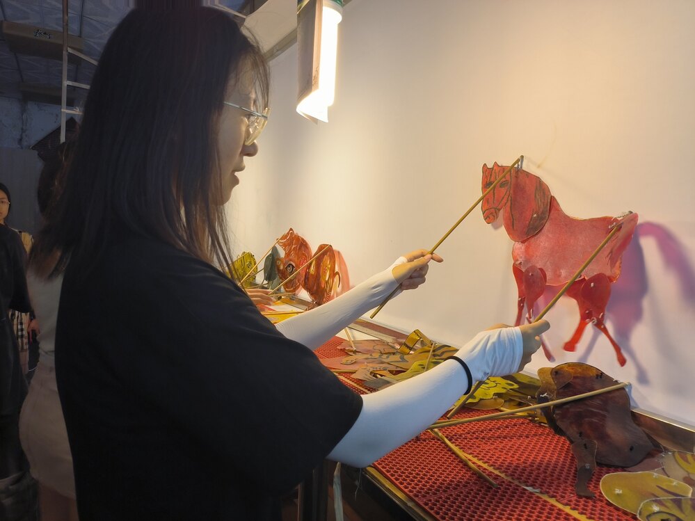 节目结束后,实践队成员体验了亲自演绎皮影的活动,感受到表演人员的不易,充分体会到“台上一分钟,台下十年功。”的深刻意义。
