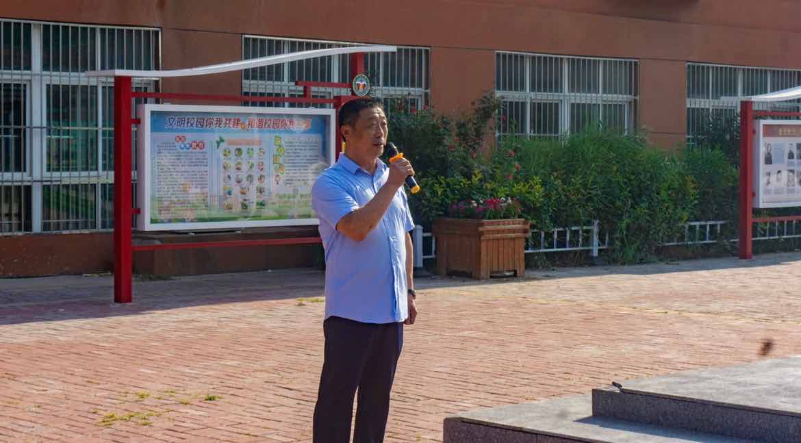 随后,明德小学校长王建秀进行国旗下讲话。他强调了学生们树立正确的人生观和价值观的重要性,以及持续学习的重要性;倡议学生学习实践团成员优秀的品格特点,树立终身学习的观念,从现在开始端正态度砥砺奋斗;同时,鼓舞学生尽自己的努力考取心仪的大学,提升自身能力,创造自身价值,为党和国家发展做出贡献。最后,他对实践团工作表示认可与感谢。