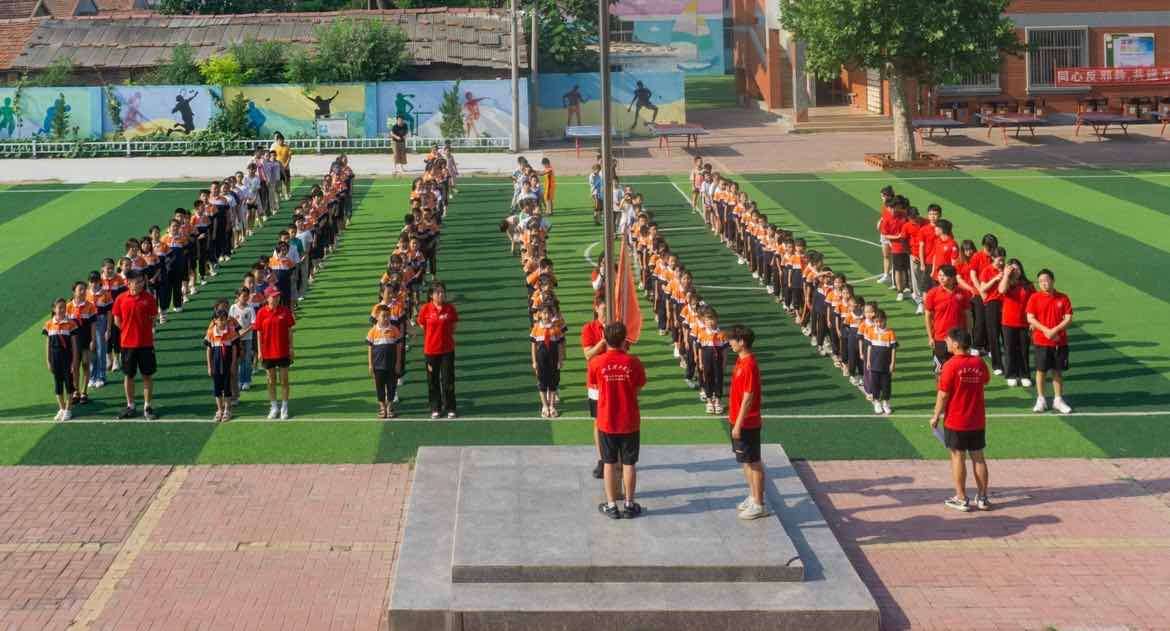为弘扬爱国主义精神,深入学习贯彻习近平总书记在实践中求真知、于探索中谋奋进的号召,在“三下乡”社会实践中坚定信念,听党话、跟党走,7月18日,山东理工大学交通与车辆工程学院“爱之传承”暑期社会实践团在德州市武城县明德小学举行以“国旗下成长”为主题的升国旗仪式。此次升旗仪式由实践团成员董梦宇主持,明德小学校长王建秀、实践团全体成员以及明德小学全体学生参加。