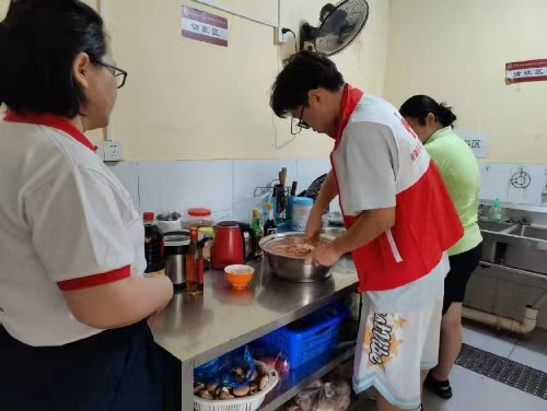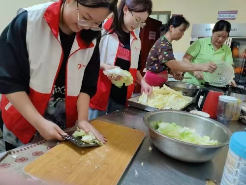 图为团队成员在切菜。通讯员 鲁李昂 摄