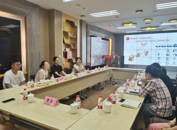 会议上,实践团成员以个别核酸亭为例,从外部设计构思、内部结构分析、造型变化、方案设想等方面进行了展示,获得现场领导和老师的一致好评。