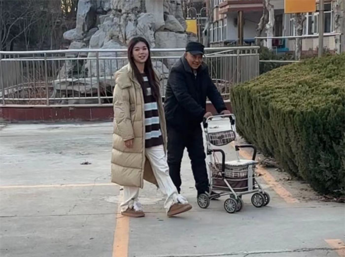 由于老人腿脚不便,所以实践团的成员搀扶老人,到户外走动,让老人多接触新鲜空气,感受阳光的温暖,多看看外面的风景不让老人独自在房间里无聊,这样既可以锻炼老人的身体素质,又可以让志愿者们了解到老人们的内心世界,增进与老人之间的相处。