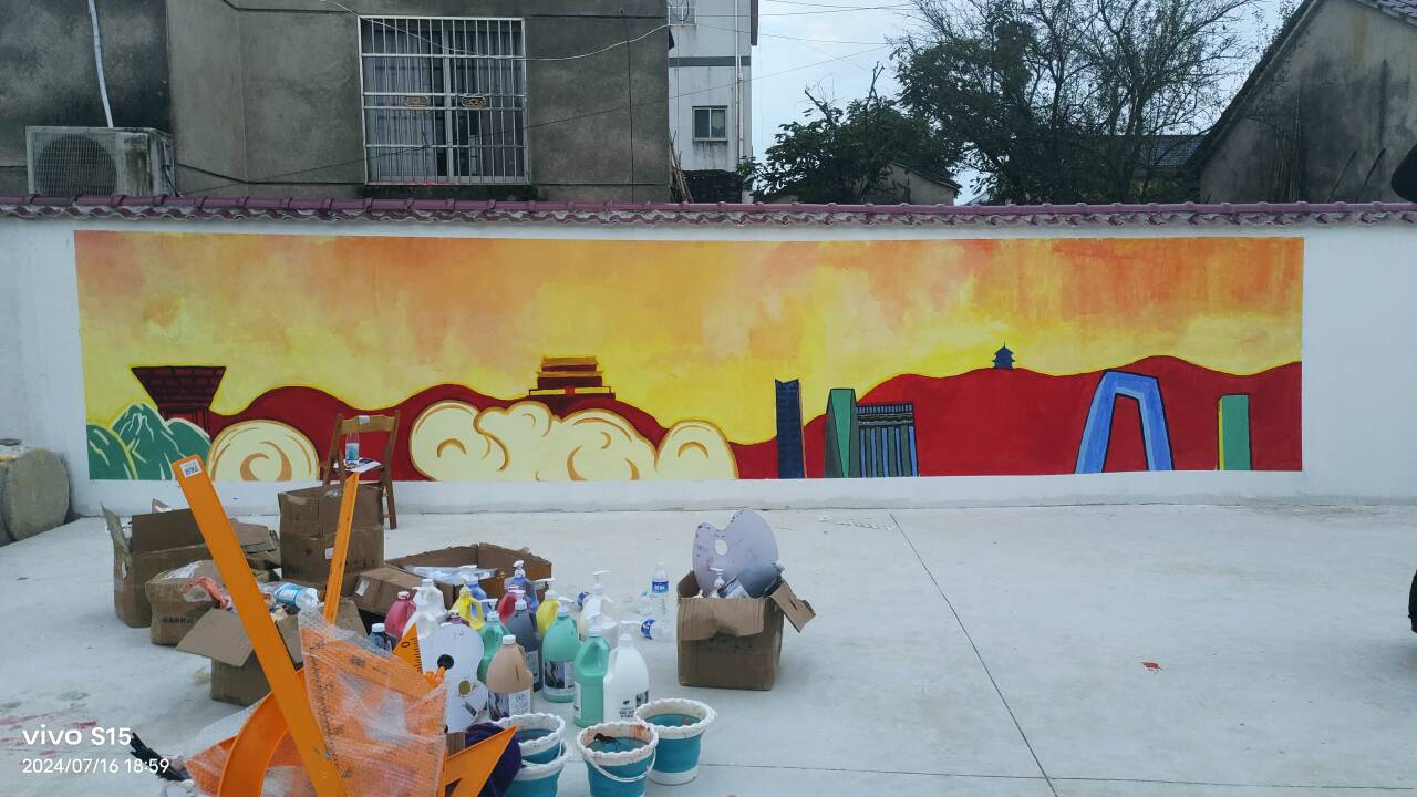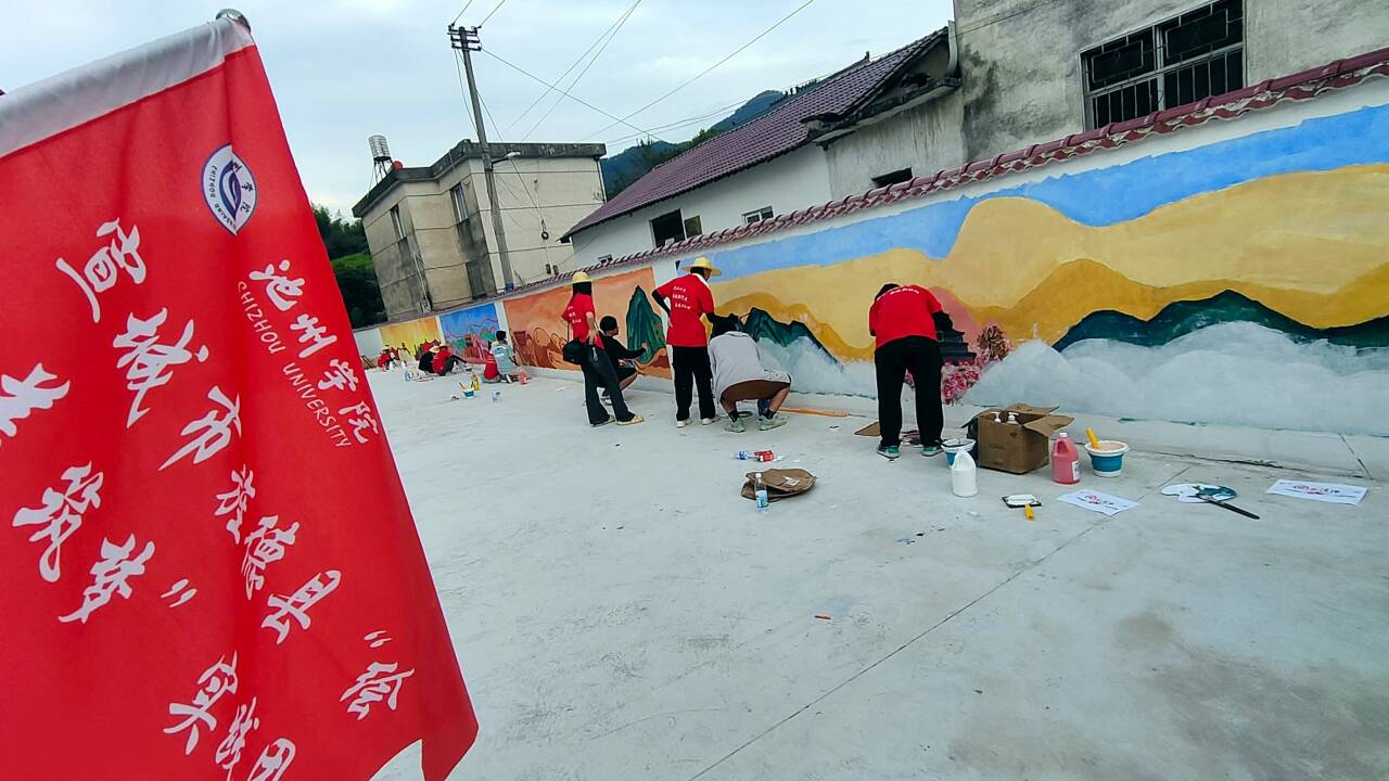 【池州学院7月16日】(通讯员 杨舒文 赵秀丽)2024年7月16日,来自池州学院艺术与教育学院的墙绘团队于庙首镇东山村开展暑期三下乡活动,他们走进乡村,用双手为和美乡村建设注入艺术活力,提升乡村的整体美感,让村民们在日常生活中感受到艺术的魅力。让原本单调的墙面焕发出新的生机。