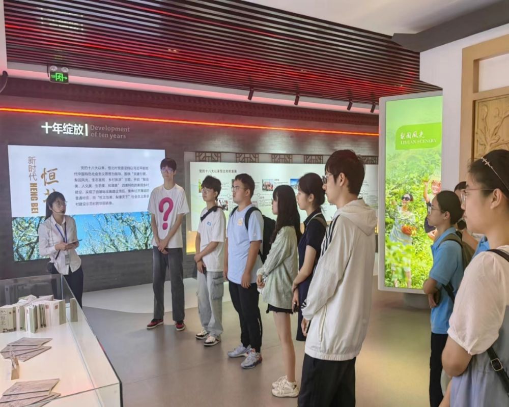 随后,调研团队来到“映像恒北”参观,进一步深入了解恒北村的概况、产业结构、历史变迁、非遗发展等情况,探究其发展过程中新质生产力的应用路径。接着又去到恒北文创街,认识当地独特的非遗瓷刻文化,感受其农文旅融合发展模式的先进性。