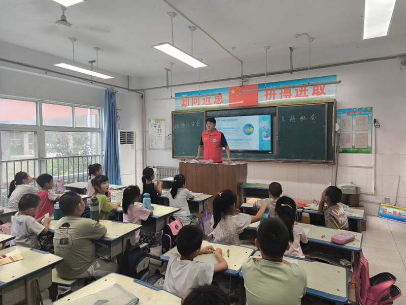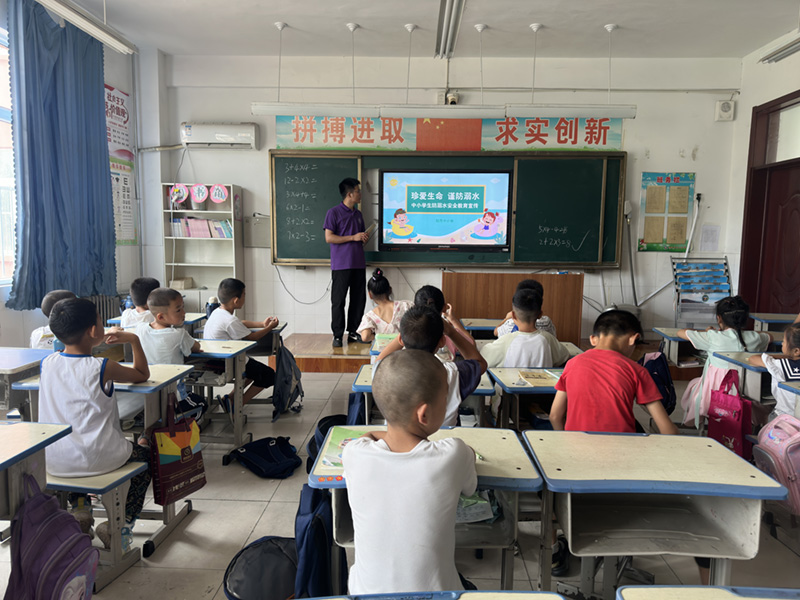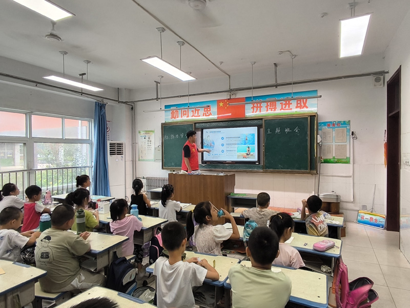 溺水警钟常响,安全永记心间。夏季是溺水事故的高发季节,为加强中小学生防溺水意识,进一步强化青少年暑期安全教育,加强学生防溺水工作。7月20日,山东理工大学“爱之传承“暑期社会实践团在德州市武城县四女寺镇明德小学开展“珍爱生命,谨防溺水”主题班会,通过互动问答、情景模拟等形式详细讲解溺水的危害和预防措施,旨在提高广大青少年和家长暑期安全防范意识,切实筑牢安全防线。
