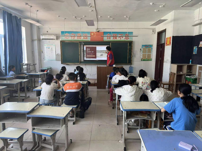 为传承和弘扬中华农耕文化,增强小学生对农耕文明的认知和理解,7月21日,山东理工大学“爱之传承”暑期社会实践团为德州市武城县四女寺镇明德小学的学生带来了《中国历代绘画大系·美育课程》第二期课程——《绘见农耕:品画•读诗•科普》,主讲人陈文江从绘见农耕之缘起、品画,解译耕图之读诗、科普四个方面,带领大家一起在中国古代绘画中“绘见”农耕文化,解译中华民族文明密码。