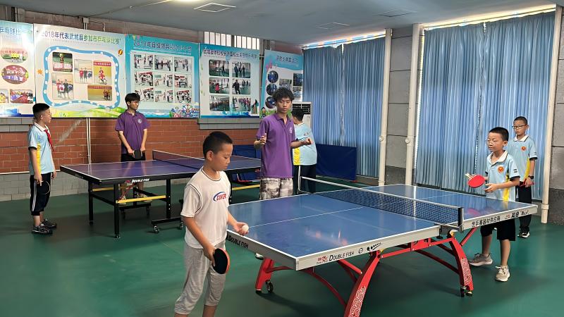 作为学校特色项目的乒乓球比赛,更是吸引了众多目光。小小的乒乓球在球桌上急速穿梭,选手们你来我往,各展绝技。他们精湛的球技令人赞叹不已。每一个精彩的回合,都赢得了现场观众的阵阵喝彩,充分展现了明德小学学生们的拼搏精神和青春风采。