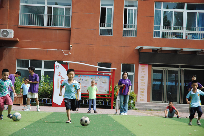 足球场上,孩子们带球奔跑、挥洒汗水。孩子们像一群小麻雀一样嘻嘻哈哈地奔跑着,足球在他们的脚下快速滚动,偶尔传来一声调皮的笑声和轻快的脚步声。他们在阳光下奔跑,留下了一段段美好的童年回忆。