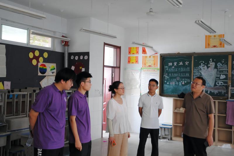 7月23日,山东理工大学交通与车辆工程学院党委副书记蔡清吉同山东理工大学交通与车辆工程学院崔建强老师和周燕燕老师来到了德州市武城县四女寺镇明德小学,对“爱之传承”暑期社会实践团学生进行亲切探望与深入指导。