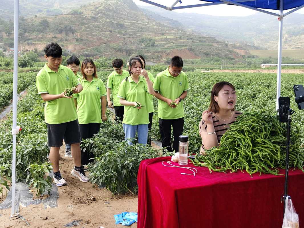 “数字经济促发展,电商助农谱新篇”。兰州理工大学陇上聚“椒”实践团最后一站走访了以“奏出直播电商新乐章,吹响农特产品集结号”为口号的云商示范管电商孵化基地。实践团初到基地,便被规模宏大的种植区以及试验区所震撼。种植区负责人向团队成员介绍到基地辣椒的种植规模宏大,采用了先进的农业科技手段,从种植到收获的每个环节都严格把控,确保每一颗辣椒的品质。种植区负责人给团队成员讲解完一些基本知识之后,让团队成员参与到了摘辣椒的环节当中,去亲身的体会农业生产的艰辛和农民的不易。在田地采摘的过程当中,会有线上直播环节,这样可以拉近消费者的距离,让消费者切实的感受到辣椒的品质。让消费者买的放心,吃的健康。在采摘完之后,便开始了线上带货环节,在此之前要做很多准备,通过农户讲解的农产品基础知识以及亲身种植与采摘的体验,去直播带货,团队也设计了一些带货过程中的环节,例如邀请当地农户分享种植经验和故事,让观众更直观的感受到辣椒背后的辛勤劳动。通过互动问答、秒杀活动等方式,我们成功吸引了大量观众。订单量也不断攀升。在直播结束后,团队成员们看到了订单金额和农户脸上的笑容,深刻体会到助农直播的意义。对于农户来说,直播不仅带来了直接的经济效益,还打开了销路,为他们的产品找到了更多的消费者。电商与农业的深度融合,为乡村振兴插上了腾飞的翅膀。
