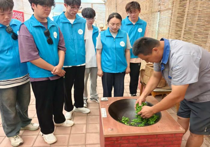 在满是茶香的制茶车间里,尹经理捻起一片翠叶,向围聚的实践团成员道出制茶技巧:“一片茶叶的好坏,与茶树的根基密不可分,但真正决定其品质的,更在于制茶师傅们手上那份分寸拿捏的功夫。”