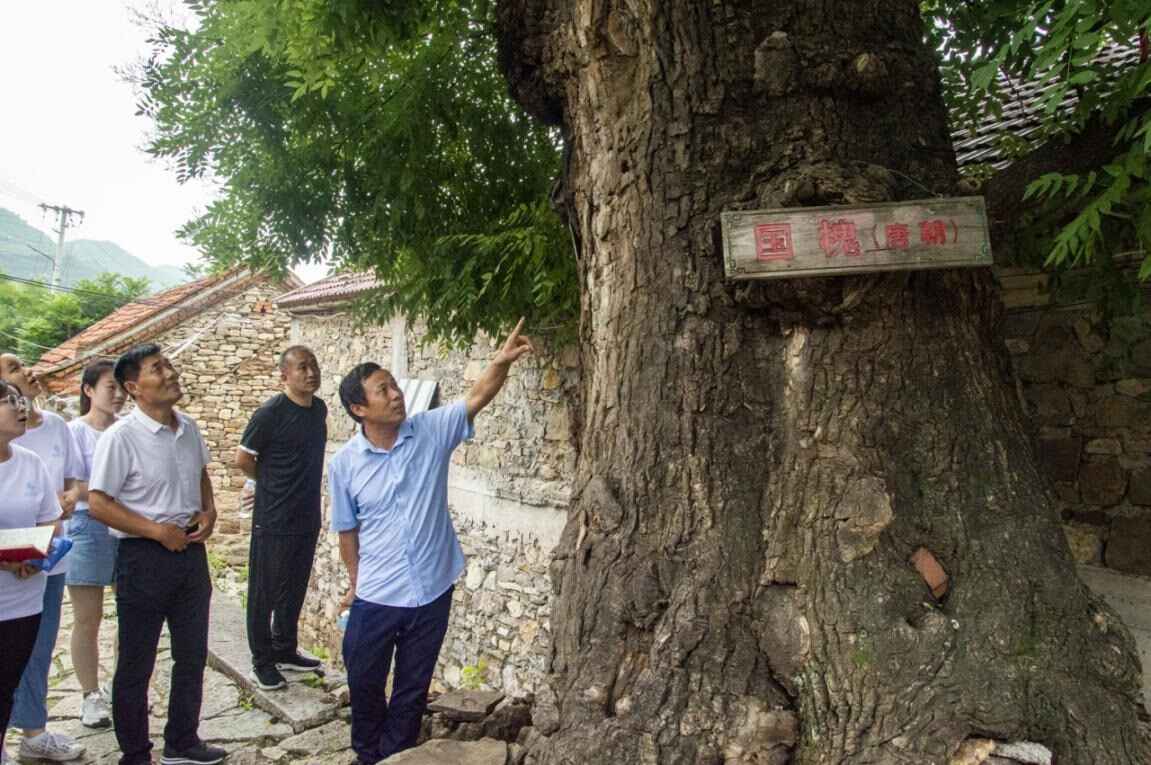 图为实践团成员在韩真主任的带领下参观唐朝古槐树之一。