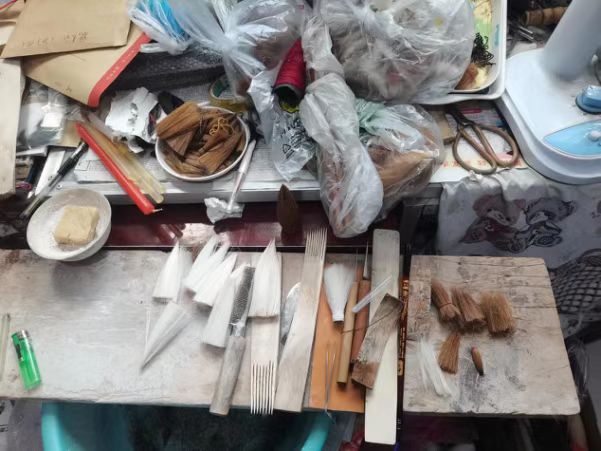 在参观过程中,我们注意到郭老师的桌子上摆放着各式各样的制笔工具,随后他逐一为我们讲解名字和用途。他说:齐笔制作要一丝不苟 ,从选料到成品来不得半点马虎。齐笔的成笔要经过浸、拔、梳、并、连等100多道工序,每一道工序都需要严谨的态度。只有这样,才能制作出笔锋尖锐、坚劲有力的齐笔。人不可貌相,海水不可斗量,看似一支小小的毛笔,做起来那么复杂,真是千锤百炼始成钢,百折不挠终成才啊!我终于明白家乡广饶的齐笔为什么能与浙江湖笔、安徽宣笔、河北衡笔并称为中国四大名笔”,我终于明白家乡广饶的齐笔为什么能创造辉煌,名扬四海。正是因为家乡广饶有一代又一代的制笔工匠,有工匠们的智慧和勤勉,才有这样博大精深和淳厚朴实的齐文化。