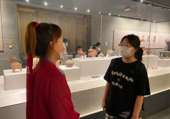 图为实践队员采访博物馆参观人员。中国青年网通讯员 宋骅 摄