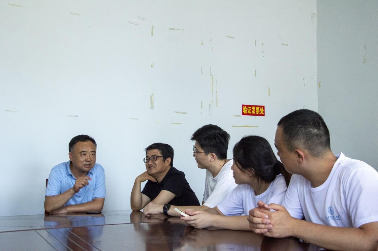 图为柳山镇南马庄村党委支部王玉宝书记与团队成员进行密切交谈。