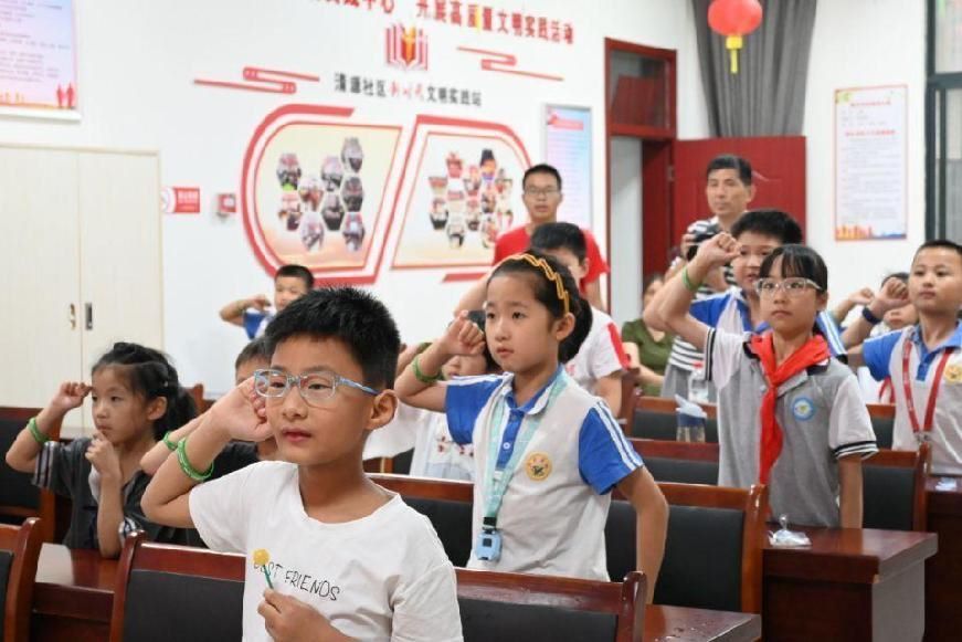 图为实践队员带领小朋友进行节水宣誓 通讯员 张子悦 摄