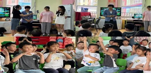 当我在教室门口等待的时候,一位古灵精怪的小男孩先是站的远远的打量我,随后慢慢靠近我,摇了摇我的手,用稚嫩的声音对我说:“老师,您直接进去就好啦。”“好的,谢谢你小朋友”,我蹲下抬手摸着他的头说着。许是因为小朋友们的热情,我心中的紧张忐忑瞬间消散。“小朋友们好呀”,回应我的是一张张笑脸。当我拿出包里的绘本向他们展示时,他们又是一阵惊呼。