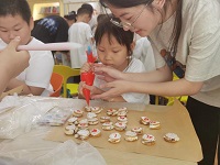 7月7日,浙江工商大学食品与生物工程学院社联微尘小队留校实践团顶着炎炎烈日,前往了钱塘区白杨街道邻里社区。留校实践团给本次活动的主角“小候鸟”上了一节甜品制作课并且对他们进行了采访。