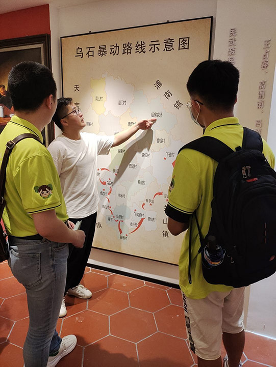 随后何河长带领我们来到乌石革命纪念馆,重温乌石革命,学习红色文化,在村支部的带领下,我们学习了乌石革命的起因,经过和结果,同时村支部也为我们生动的讲解了乌石革命的路线图,乌石人民在极其简陋的条件下,响应革命号召,奋起革命,村支部的解说声情并茂,实践队员们无不肃然起敬,当时革命的场景历历在目,一张张珍贵的照片和实物展示,让实践队员们重温革命历史,缅怀在革命中牺牲的先烈,学习乌石精神,汲取精神力量。