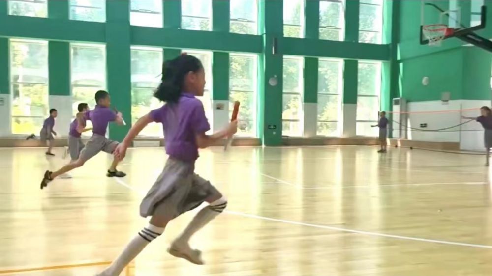 图为学生接力比赛中奋力奔跑 通讯员 王森
