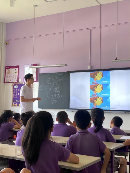 线下支教:培养多元素质,点燃求知欲线下支教分为第一期和第二期,由来自各个领域的志愿者组成,共计120余名二年级学生参与其中。“我们的课程安排不仅丰富多彩,更旨在唤起孩子们对知识的渴望。”支教队队长刘焕焕说。线下支教活动包括科普课、国学课、环境保护课、魔方课、折纸课、心理健康课、消防安全课等等,为孩子们提供全面的教育体验。科普课上,刘新楷老师将航空母舰和船上的人相比较,把抽象的概念转化为趣味的讲解,让孩子们更好的理解航母之大。党史课上,学生们不理解抗日战争的局势,王森老师大展身手在黑板上画了一幅中国地图。回忆起这件事情的时候,张雅晴同学特别激动地说:“那一刻我觉得老师就是我心中的神。”王森老师感慨道:“其实我根本不会画画,但是作为老师我愿意为了学生学会这些。”