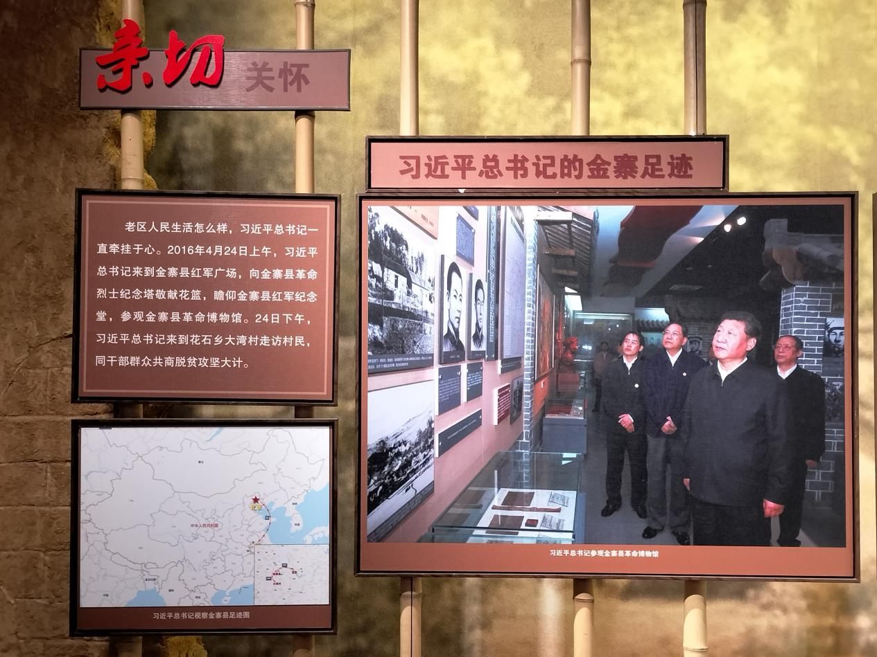 图为习近平总书记视察金寨的足迹资料。爱开大学生网通讯员 杨晨曦 摄