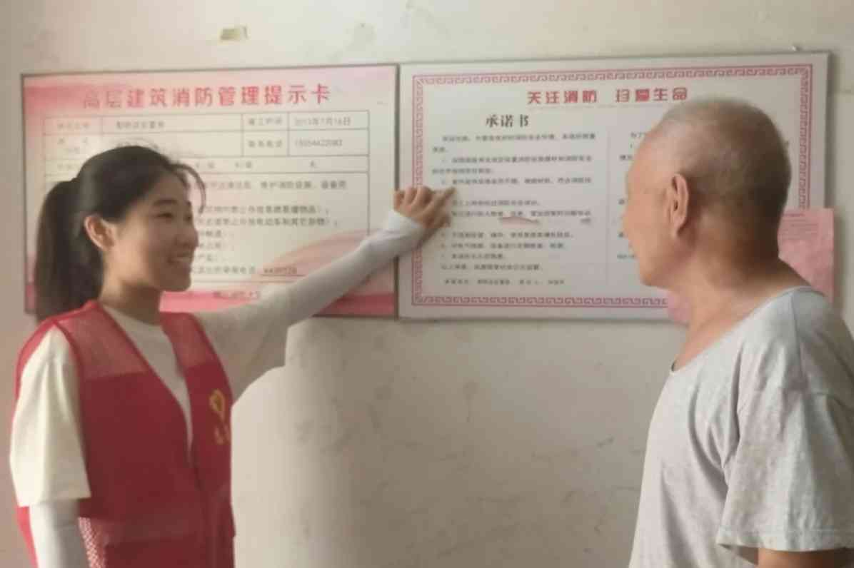 图二:实践队员正在帮社区里的不识字老人科普消防知识