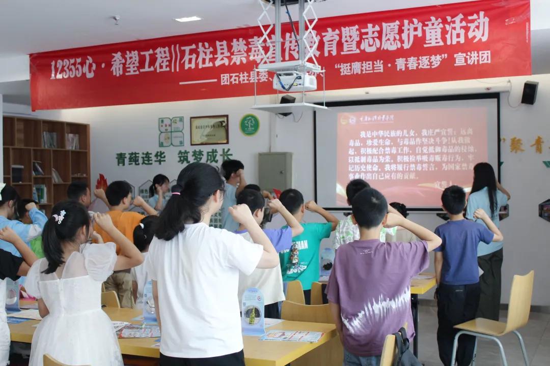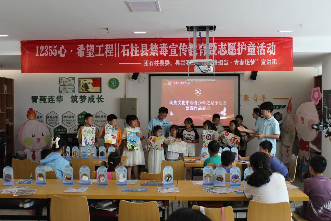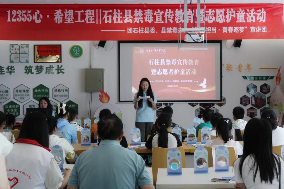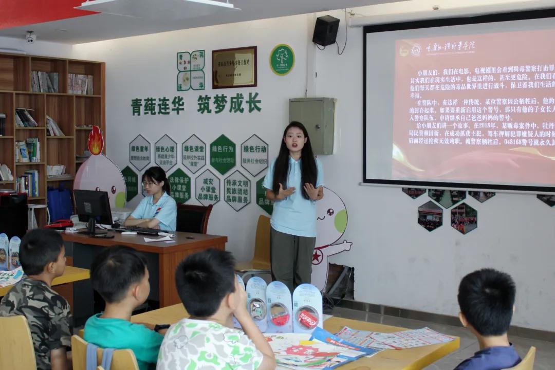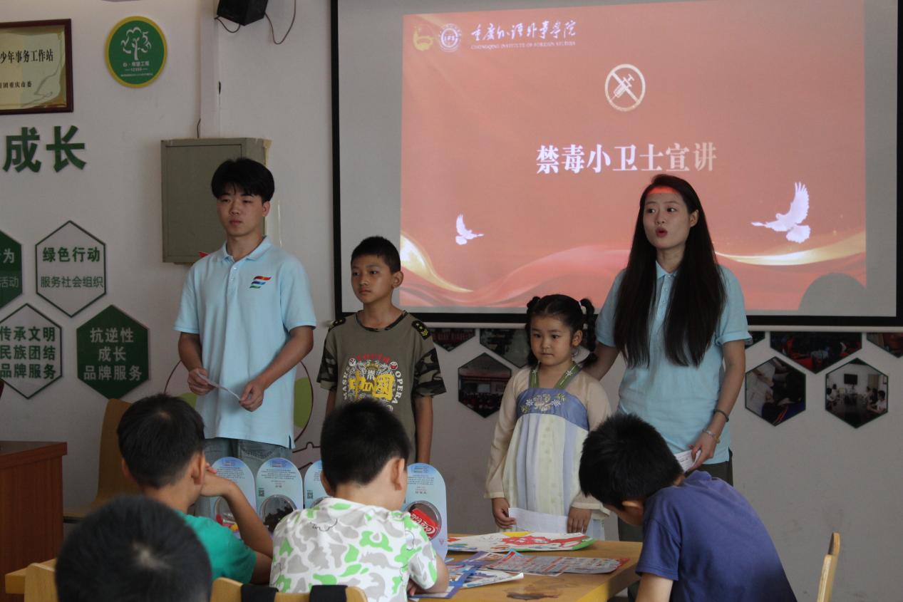 重庆外语外事学院青年推普:探索语言之路行千里,宣传国语之音润万方为深入开展毒品预防宣传教育,健全完善全民毒品预防教育工作体系,传递健康无毒理念。7月21日,重庆外语外事学院“普韵振兴,魅力石柱”志愿服务队联合重庆市石柱县团委以及石柱县禁毒办,举办“12355心·希望工程|石柱县禁毒宣传教育暨志愿护童活动”。活动由团县委副书记刘静、石柱县禁毒办孙建秀、“普韵振兴,魅力石柱”志愿服务队全体成员和民族文化中心青少年之家全体学生参加。