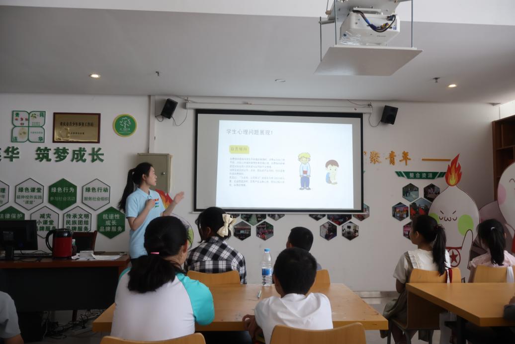 在当今社会,孩子们在学习、生活和社交方面都承受着不小的压力。为此服务队成员但欣玥为孩子们带来了一堂富有意义的心理健康教育课。该课程从“什么是心理健康”“孩子们的困惑”“学生心理问题展现”“同学们该做些什么”四个方面展开。