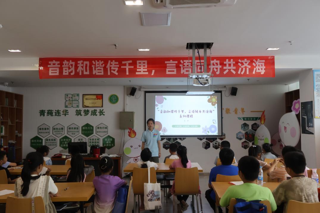 在习近平新时代中国特色社会主义思想的指引下,要求强化教育教学和结合地方文化,推广普通话工作具有了更为深刻的重要意义。服务队成员赵灵和贾已铭为孩子们带来了“音韵和谐传千里,言语同舟共济海”推广普通话系列的第一节课程。课程内容着重讲述了普通话的重要性,让孩子们深刻认识到普通话在沟通交流、学习知识以及未来发展中的关键作用。