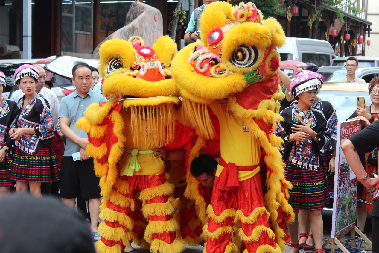 图为长桌宴吉祥舞狮表演 陈书雅 供图