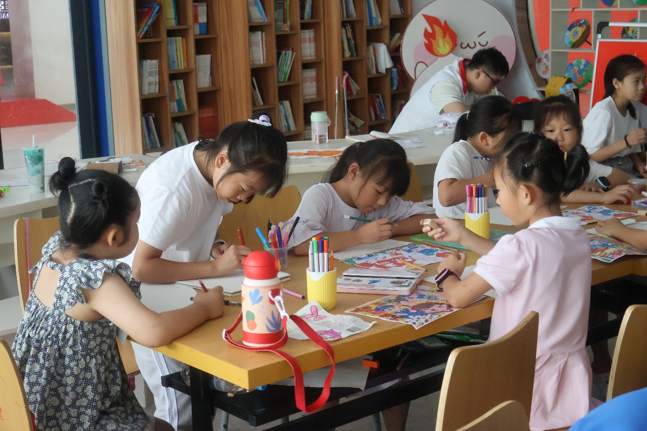 图为小朋友们探讨海报应该如何绘制禁毒海报。杨恒博 供图