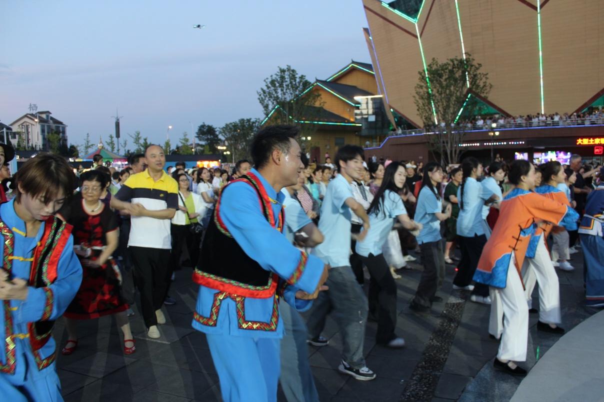 摆手舞动山河,长桌宴聚民心“挺膺担当,青春逐梦”宣讲团来到了石柱黄水镇,参与了当地的长桌宴和摆手舞。在长桌宴现场宣讲团成员跟随土家女孩儿一起游街,观看舞狮、锣鼓等传统节日。在长桌宴结束后,宣讲团成员来到了天上黄水大剧院跟着专业舞者一起齐跳摆手舞。