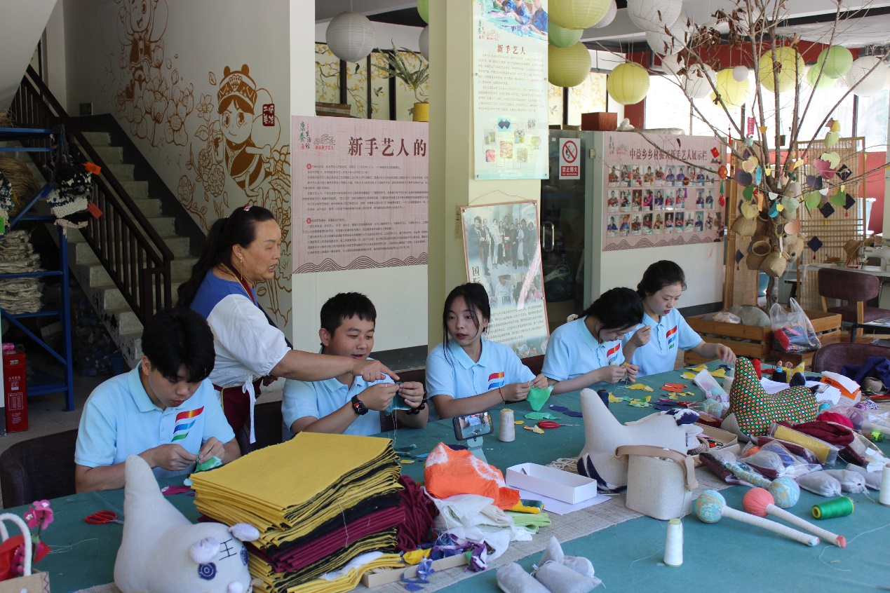 宣讲团成员通过与非遗工坊负责人进行交流,了解到通过制作非遗产品,让当地多数妇女在闲暇时间有了经济收入,不仅仅是对非物质文化遗产进行了传承和创新,也带动了当地的收入。在参观和交流后,宣讲团成员亲身体验制作非遗产品“布老虎”,通过制作感受到了手工制作产品的辛苦,同时通过劳动也深深感受到了非遗文化的魅力。