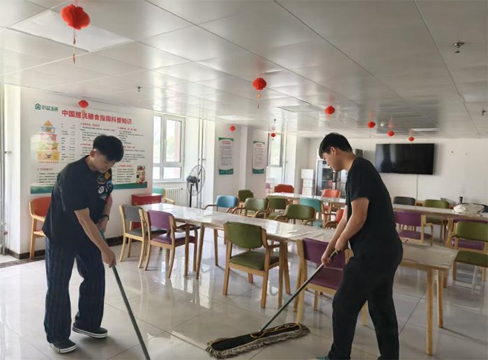 社区工作人员偶尔经过,点头示意,似乎对他们的努力表示认可。傍晚时分,学生们拖着疲惫的身躯离开,却带着满足的神情。社区的地板焕然一新,桌椅摆放整齐,空气中少了往日的油烟味。