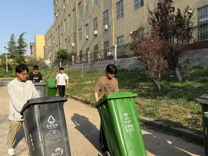 走进日月潭养老中心,实践团成员们首先对院内各类垃圾桶进行了归类搬运。根据生活垃圾分类标准,他们将“其他垃圾”与“厨余垃圾”分别引导至指定清运点,有序完成清理任务。这不仅提升了院内卫生水平,也协助工作人员减轻了日常工作负担。在整理过程中,队员们注意观察分类标识,并主动向工作人员请教分类细节,以确保每一步操作规范、准确。