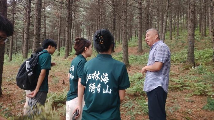 图为宏泰松果有限公司人员给团队成员讲解关于红松知识 李佳馨摄