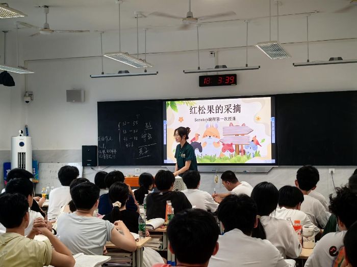 带着从黑土地汲取的这份滚烫的精神火种与扎实的专业智慧,团队跨越山河,将实践的星火播撒至天府之国的沃土——四川省乐至中学。宣讲台上,宏泰林场松籽采摘的场景,成为启迪思维的绝佳引信。队员们匠心独运,以“算法解码森林智慧”为主题,巧妙编织科技之线与精神之魂。他们引导乐至学子,将目光投向兴安岭:如何用代码优化松塔的采收路径?如何让程序模拟智能分拣的慧眼?指尖在键盘上跳跃,一行行代码如溪流汇聚,抽象的逻辑思维在具象的林业图景中生根发芽。屏幕闪烁的微光,映照着年轻脸庞上专注与顿悟的神情。这不仅仅是一次编程启蒙,更是一场跨越时空的“精神嫁接”——学子们在构建虚拟采收模型的同时,无形中触摸到了千里之外红松那不屈的脉动;在理解循环与判断的逻辑之美时,也悄然领悟了林区人面对自然挑战时的智慧与韧性。科技,在此刻成为传承古老精神的最新载体,为“绿水青山就是金山银山”的时代命题,注入了青春锐意与数字活力。