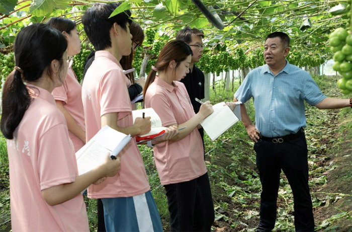 7月15日,实践队员前往平度市青岛高氏葡萄种植庄园有限公司、山东省鲜食葡萄研究所社会实践,探寻规模化经营赋能葡萄产业提质增效的发展路径。高氏庄园构建“公司+合作社+种植户”模式,积极为葡萄种植户提供种植技术、销售渠道、农资采购等服务,从产业生态构建、生产管理创新、市场渠道拓展,到文化传承与合作社协同,多维度探索葡萄产业融合发展路径。山东省鲜食葡萄研究所积极参加全球性的葡萄产业论坛,为推动葡萄“种得好”迈向“卖得好”“卖得远”,实现葡萄产业品牌价值提升,积极打造具有地域特色的产业名片,为乡村振兴奏响共富发展的新乐章。