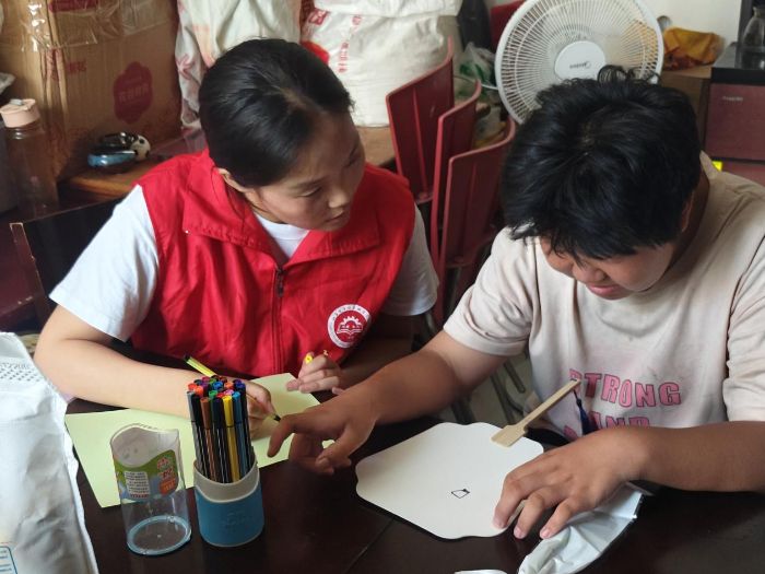 活动后期,服务队联动南京特殊教育师范学院“AI筑梦特教”先锋队志愿者深入7个特需儿童家庭开展入户走访。志愿者们送上学院筹备的“爱心资助包”(内含学习用品、生活物资),实现“校园关爱”向“家庭帮扶”延伸。“谢谢你们送来的轮椅防滑垫,太实用了!”脑瘫儿童母亲李女士哽咽道谢。