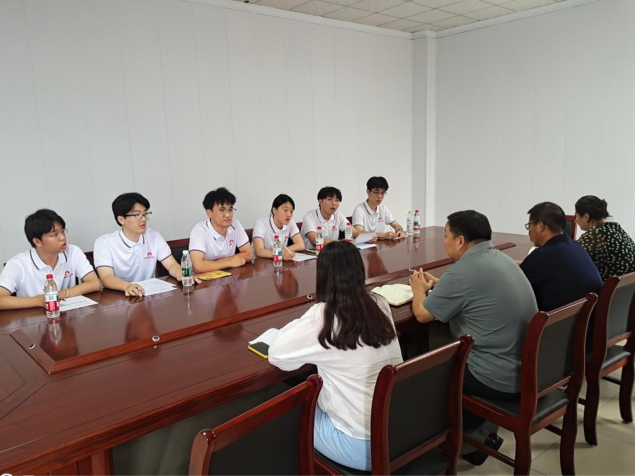图为实践队在与团市委派驻牛家村第一书记张祎萌、村负责人张全峰会面