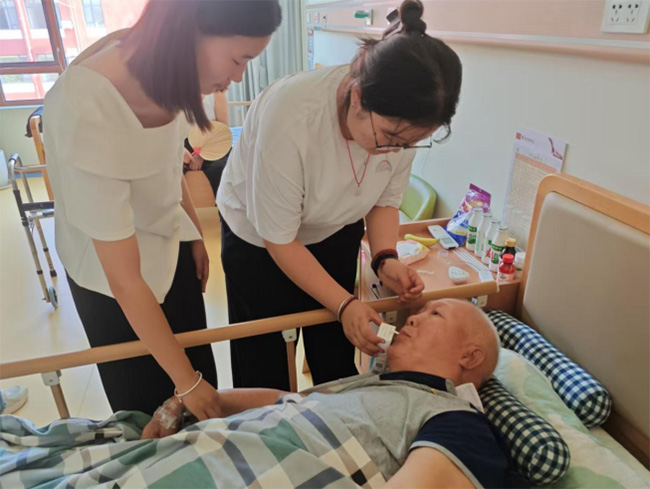 在探望卧床老人的过程中,实践团成员细心地为老人喂水,并轻声安慰。房间内安静祥和,青年学生的身影与老人床前的交流形成鲜明画面。通过陪伴与照料,他们给予了老人切实的帮助,也让老人们的生活多了一份安心。