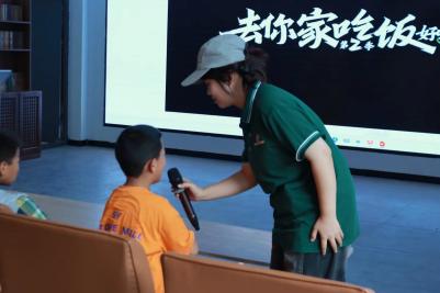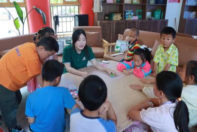 图为团队成员引导孩子大方进行普通话自我介绍。周琦供图。