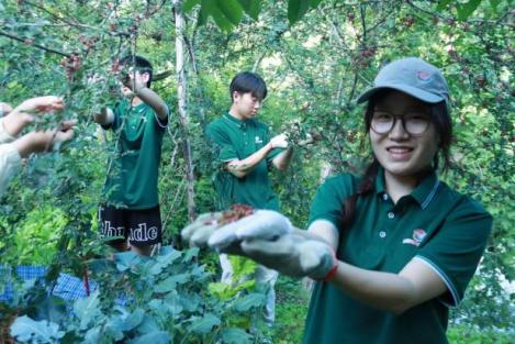 图为团队成员与村民协作采摘花椒的场景。周琦供图