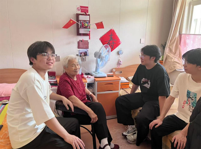 简单的交谈中流露出的温情,让房间充满了和谐与温暖的氛围。这些互动不仅让老人们感受到关心,也使青年学生们体会到陪伴与倾听的重要性。