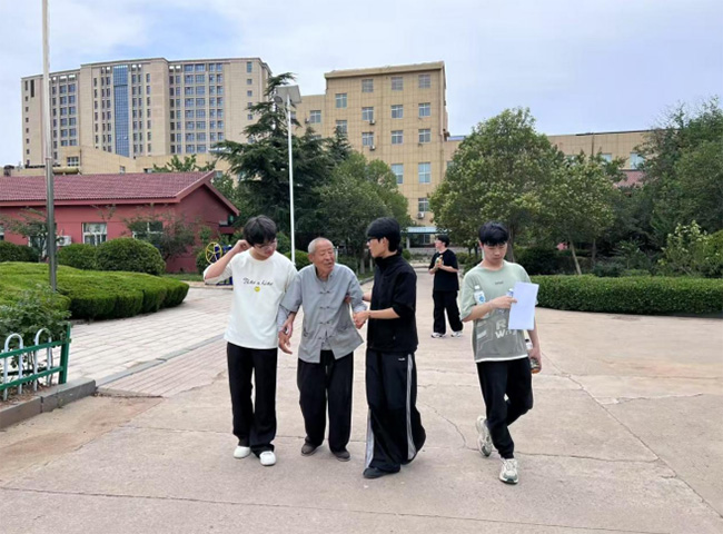 除了承担生活事务外,实践团成员还用心陪伴老人们的日常。老人们在成员的搀扶下走出房间,来到院内庭院散步,既锻炼了身体,又增进了交流。几位成员在一旁耐心交谈,认真倾听老人们的叙述,帮助他们排解孤寂。无论是在阳光下的散步,还是在房间里的交谈,都让老人们露出了久违的笑容。