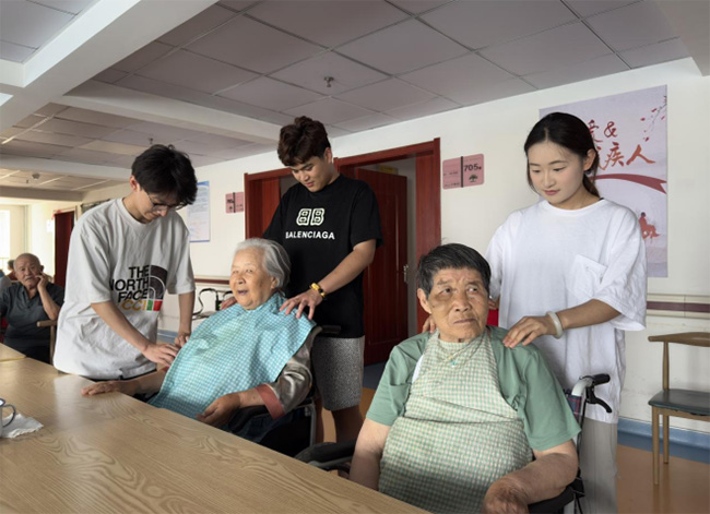 在日常照料环节中,志愿者们还为部分高龄老人进行轻柔的按摩和肩颈放松。老人们在关怀中露出欣慰的笑容,不少人对年轻人的细致照料表示由衷感谢。这些实际行动不仅减轻了老人们的生活负担,也让他们感受到来自社会的温暖与尊重。