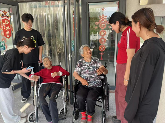 实践团成员总是耐心陪伴。他们协助轮椅老人走出房间,感受户外阳光,用真诚的话语和认真的倾听让孤独的心有了寄托。老人们也在这群年轻人的到来中找到了温暖与陪伴,彼此之间建立起真挚的情感联系。