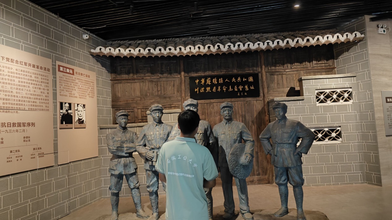 参观完整个展厅后,当调研团再次站在毕节博物馆门前时,阳光依旧明亮,成员们的眼神却多了几分坚定。从一楼的农耕渔猎到二楼的红军蜡像,从历史尘埃到革命烽火,安徽工业大学的学子们完成了一场精神洗礼。 实践队员们从旧石器时代看到清代的历史发展,也看到了中国工农红军的艰苦奋斗,同时认识到毕节试验区在当今的不断发展。通过这次“聚焦红色基因传承”社会实践活动,团队成员在传承中华传统历史文化,学习红色精神的同时,更加想要增强本领参加到现在毕节、中国的发展征程当中,践行红色精神,作为时代发展的一份子,撸起袖子加油干。