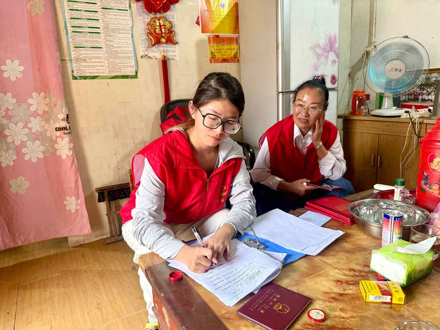 走进乡村农户,实践团成员身穿红色志愿马甲,协助整理档案资料。在充满生活气息的室内环境中,专注记录信息,为基层数据梳理与民生服务优化贡献力量,用实际行动助力乡村治理精细化。